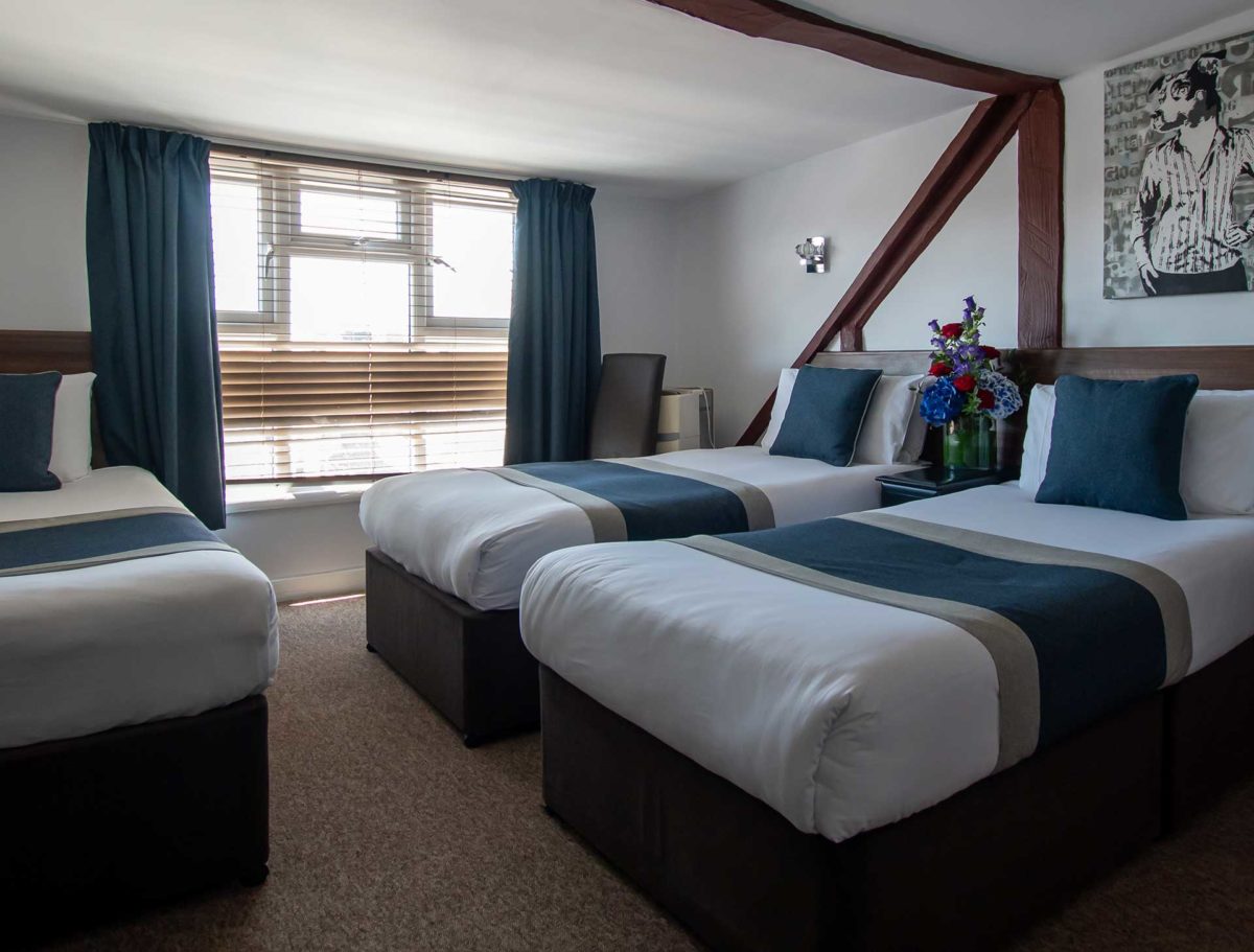 Our triple or quad rooms are for up to 4 guests where we offer a combination of up to 4 single beds or a double bed and single bed for family stays.