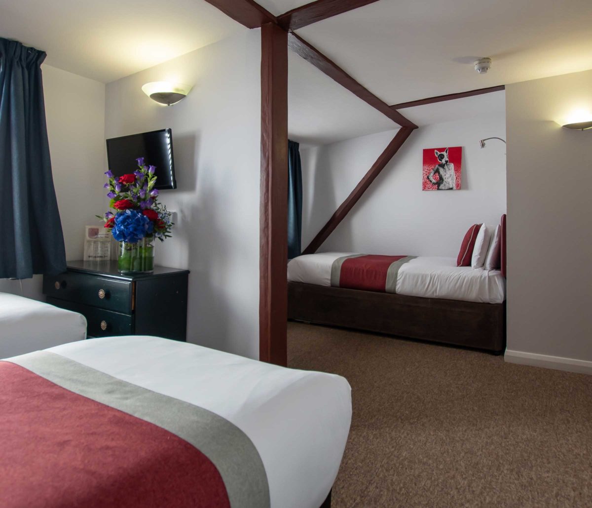 Our deluxe triple or quad rooms for up to 4 guests can be configured to have 4 single beds or a double bed and single bed.